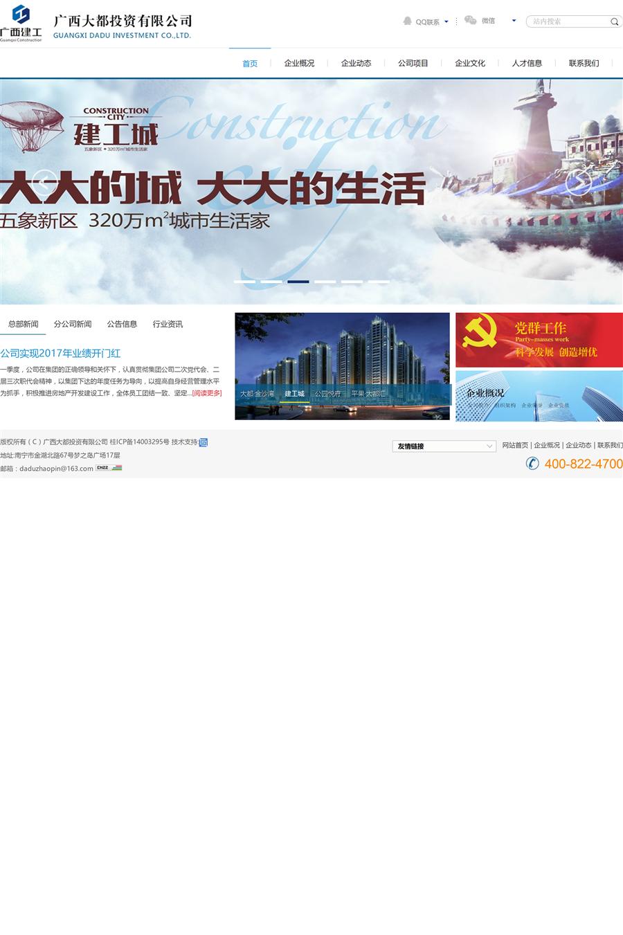 廣西大都投資有限公司成立于2010年12月29日,是中國500強(qiáng)企業(yè)-廣西建工集團(tuán)有限責(zé)任公司重點(diǎn)打造的一家以房地產(chǎn)開發(fā)為主業(yè)的多元化投資企業(yè),擁有國家二級房地產(chǎn)開發(fā)資質(zhì)。
