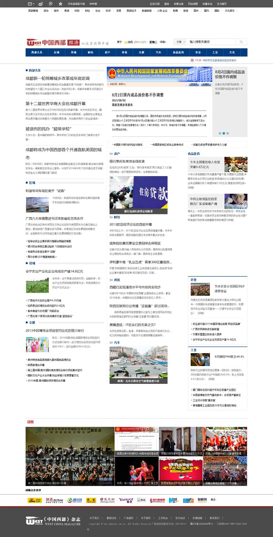 中國西部報(bào)道是《中國西部》雜志社官方網(wǎng)站。立足西部,依托《中國西部》雜志社旗下報(bào)刊,整合國內(nèi)主流媒體公共資源,深度報(bào)道中國經(jīng)濟(jì)、文化、教育、旅游以及城市和區(qū)域發(fā)展的綜合網(wǎng)站。