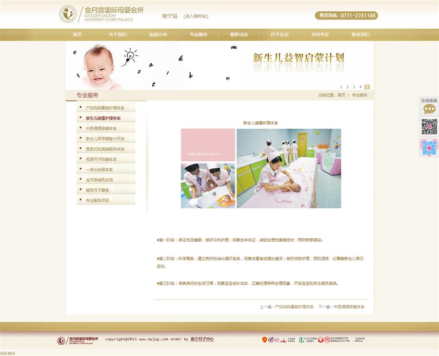 南寧市金月宮家政服務(wù)會(huì)所是一家入住式高端月子會(huì)所,由香港達(dá)裕國(guó)際(中國(guó))有限公司投資,以豐富經(jīng)驗(yàn),結(jié)合現(xiàn)代醫(yī)學(xué)、心理學(xué)、營(yíng)養(yǎng)學(xué)、護(hù)理學(xué)為媽媽和寶寶提供全面的指導(dǎo)和護(hù)理。