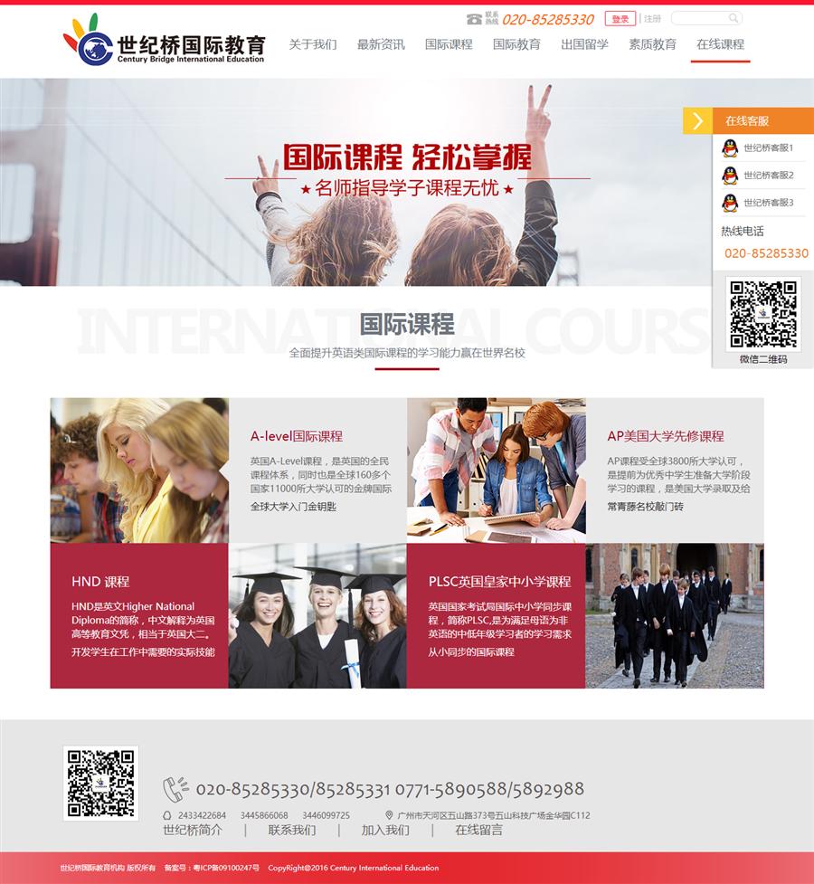 世紀橋國際教育集團于1997年始創(chuàng)于中國廣州,海外總部設(shè)在美國洛杉磯。秉承從成功留學(xué)到留學(xué)成功的教育理念, “中國教育國際化,國際教育本土化”的教育情懷,世紀橋致力培養(yǎng)具有民族情懷、國際視野的世界公民。