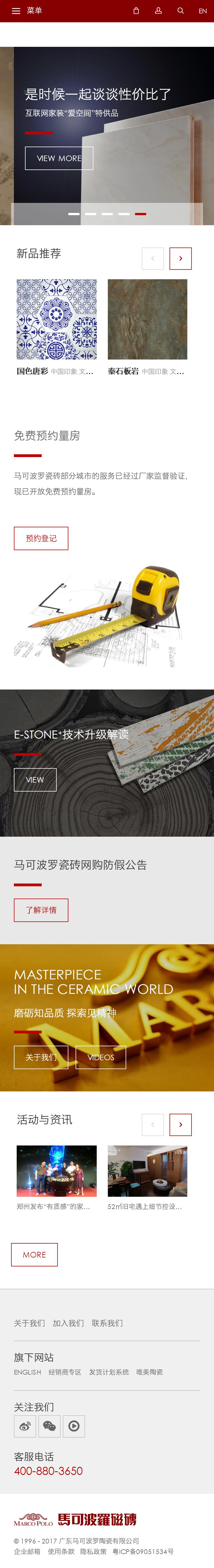 “馬可波羅”品牌誕生于1996年,作為國(guó)內(nèi)建陶行業(yè)最早品牌化的企業(yè)之一,以“文化陶瓷”占領(lǐng)市場(chǎng)。目前產(chǎn)品涵蓋亞光磚、拋光磚、拋釉磚、內(nèi)墻瓷片、微晶石、手工雕刻磚等所有品類。企業(yè)現(xiàn)已申報(bào)專利800多項(xiàng),其自主研發(fā)的原創(chuàng)設(shè)計(jì)──“中國(guó)印象”系列產(chǎn)品,將中國(guó)傳統(tǒng)文化之精髓展現(xiàn)在瓷磚上,引導(dǎo)設(shè)計(jì)之風(fēng)回歸東方禪韻,受到國(guó)內(nèi)外消費(fèi)者和專家的廣泛關(guān)注。